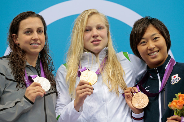 200 м на спине:Э.Бейсел, М.Франклин (обе - США), А.Зуева (Россия)