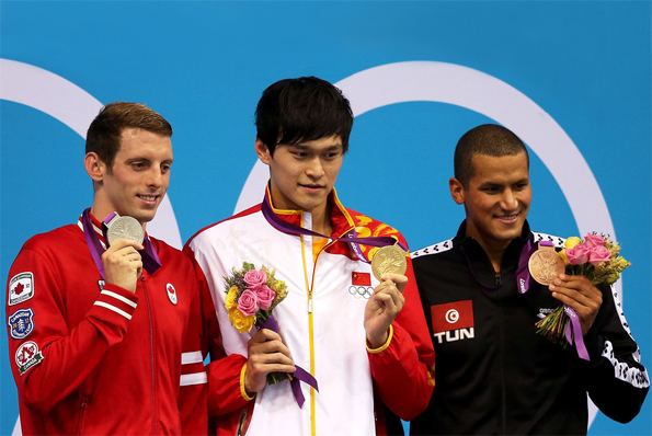 1500 м вольный стиль:Р.Кокрэйн (Канада), Сун Янг (Китай), У.Мелоули (Тунис)