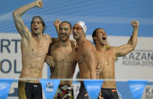Команда Франции - чемпионы в эстафете 4х100 м вольным стилем