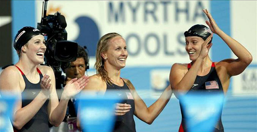 Команда США - чемпионки в эстафете 4х100 м вольным стилем