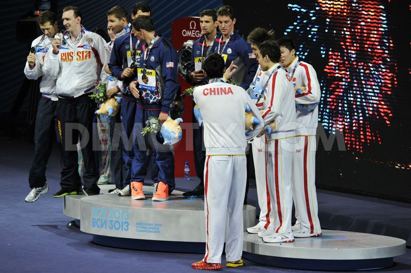 Команда США - чемпионы в эстафете 4х200 м вольным стилем