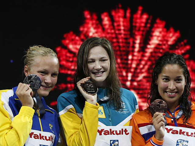 100 м вольным стилем: С.Сьестрем (Швеция), К.Кэмпбелл (Австралия), Р.Кромовидйойо (Нидерланды)