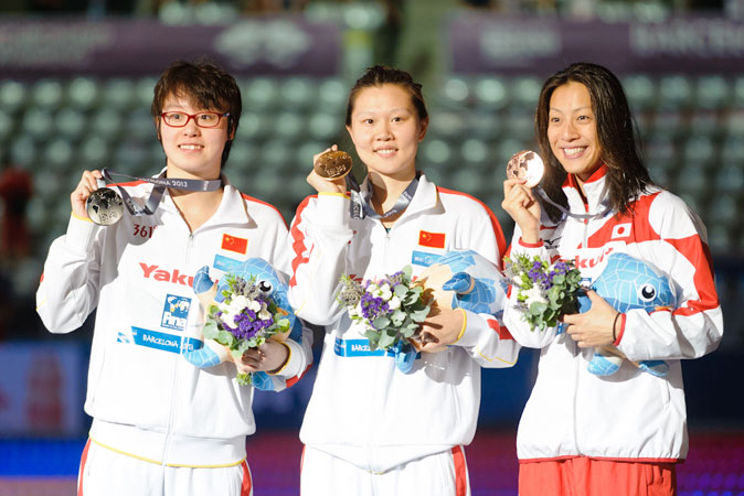 50 м на спине: Ю.Фу, Ц.Чжао (обе - Китай), А.Теракава (Япония)